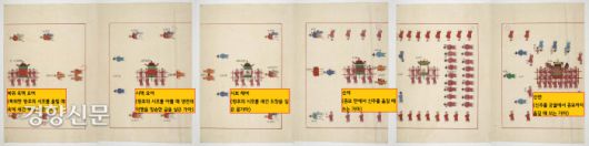‘7일의 왕후’ 단경왕후 신씨가 폐위된 지 233년만인 1739년 복위되면서 ‘단경’이라는 시호를 받고 종묘에 신주가 안장되는 과정을 그린 반차도. |국립중앙박물관 제공 |