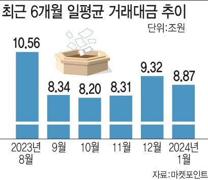 증시에서도 거래가 주춤한 모습이 나타나고 있다. 코스피의 1월 일 평균 거래대금은 8조8712억원으로 12월(9조3290억원)보다 4.91% 줄었다. 코스피가 올해 2655.28로 출발해 26일 2478.56까지 6.66% 내리며 증시에 대한 인기도 식는 것으로 풀이된다.
