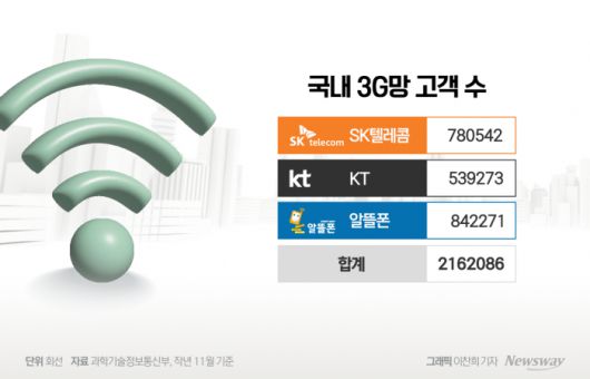 지난해 11월 말 기준 국내 3G 망 회선 수. 그래픽=이찬희 기자 |