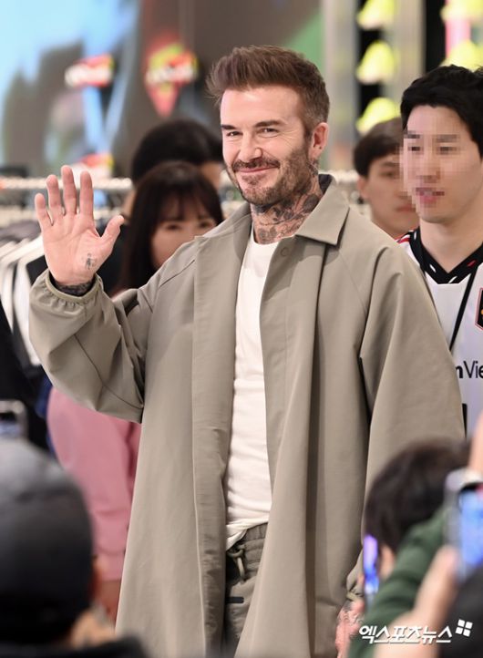 무려 4년 만에 한국을 다시 찾은 베컴은 몸 전체를 감싼 파격 문신과 함께 등장한 베컴은 한국 팬들과 반가운 만남을 가지며 연신 환한 미소로 포토타임과 토크에 응했다.