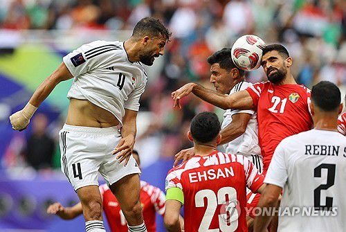 요르단이 계속 두드렸다. 전반 20분 올완이 동료와 패스를 주고받은 뒤 골문 구석을 향해 슈팅을 시도했으나 골키퍼 선방에 막혔다. 이라크도 곧바로 반격에 나섰다. 전반 21분 크로스 이후 요르단 수비가 걷어낸 공을 알리가 발리 슈팅으로 연결했으나 벗어났다.