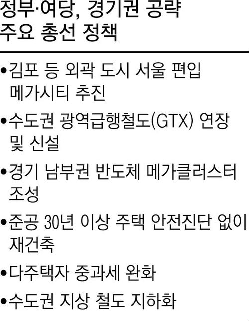4월 총선을 앞두고 정부·여당이 대규모 개발 및 감세, 규제 완화 공약을 쏟아내고 있다. 공약은 수도권, 특히 여당이 열세라고 평가받는 경기도에 집중돼 있다. 실현 가능성을 고려하지 않은 ‘공약(空約)’을 남발한다는 비판이 제기된다.