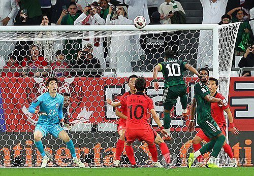 (알라이얀=연합뉴스) 김도훈 기자 = 30일(현지시간) 카타르 알라이얀 에듀케이션 시티 스타디움에서 열린 2023 아시아축구연맹(AFC) 아시안컵 16강전 한국과 사우디아라비아의 경기. 살렘 알다우사리가 헤더슛을 시도하고 있다. 2024.1.31