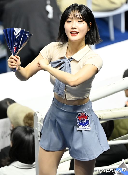 (엑스포츠뉴스 김천, 김한준 기자) 30일 오후 경북 김천실내체육관에 열린 ‘도드람 2023-2024 V-리그’ 한국도로공사와 흥국생명의 경기, 한국도로공사 치어리더 최홍라가 멋진 공연을 선보이고 있다.김한준 기자 kowel@xportsnews.com