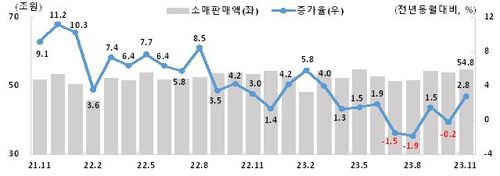연구원은 "소매판매가 연말 할인 행사 영향으로 일시적으로 증가했지만, 고물가와 고금리에 따른 소비 여력 약화가 지속돼 전반적으로 부진한 모습을 보인다"며 "'동행축제', '코리아세일페스타' 등 중소기업과 소상공인을 위한 소비 촉진 정책을 지속 추진해 내수경제를 활성화할 필요가 있다"고 말했다.