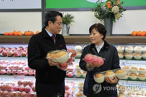 송 장관은 "농식품부는 설 일주일 전부터 제수용 사과·배 3개 들이 90만팩에 대해 마트 공급가격 인하를 지원하고 실속 선물 세트 10만개를 준비해 시중가 대비 15∼20% 저렴한 가격으로 공급하겠다"며 "설 명절 전까지 장바구니 부담 완화를 위해 최선을 다하겠다"고 밝혔다.