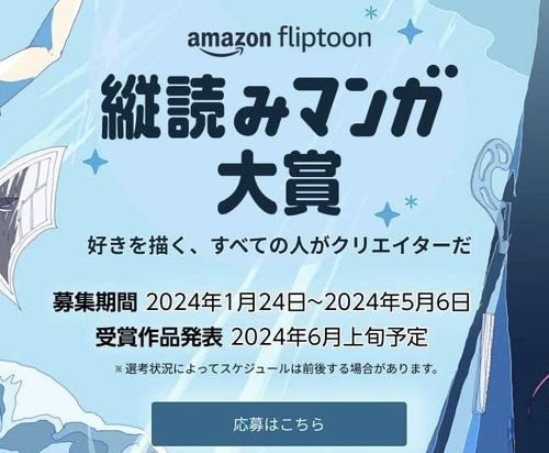 31일 웹툰 업계에 따르면 아마존 저팬이 '아마존 플립툰 세로 읽는 만화'(縱讀みマンガ·다테요미만가) 대상' 공모전을 개최했다.