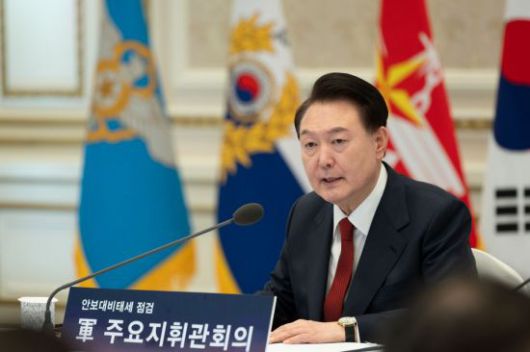 대통령실에 따르면 윤 대통령은 이날 오후 청와대 영빈관에서 주재한 군 주요 지휘관 회의에서 "북한이 우리를 교전 상대국이자 주적으로 규정하면서 국민 불안과 국론 분열을 꾀하고 있는 상황"이라며 이같이 말했다. 그러면서 "자유민주주의와 시장경제 체제에 대한 신념이 곧 안보"라고 강조했다.