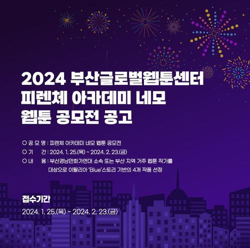 (부산=연합뉴스) 부산정보산업진흥원은 아카데미 네모와 오는 2월 23일까지 피렌체 웹툰 공모전을 개최한다고 1일 밝혔다.