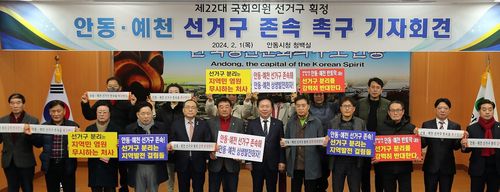 여야 잠정 합의안으로 안동·예천 선거구를 분리하는 것으로 알려지자 지역 9개 시민단체도 이날 회견에 동참해 선거구 분리에 반대 의사를 밝혔다.