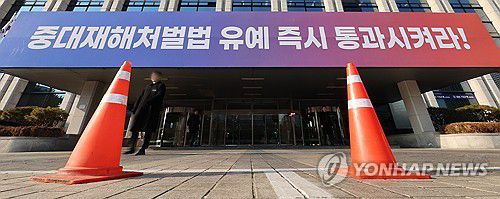 중대재해처벌법 유예 현수막 내건 중소기업중앙회(서울=연합뉴스) 김주형 기자 = 중대재해처벌법이 50인 미만 사업장으로 확대 시행에 들어간 가운데 31일 서울 영등포구 중소기업중앙회 건물에 중처법 유예를 촉구하는 현수막이 걸려 있다. 2024.1.31 kjhpress@yna.co.kr ▶제보는 카카오톡 okjebo▶연합뉴스 앱 지금 바로 다운받기~▶네이버 연합뉴스 채널 구독하기<저작권자(c) 연합뉴스, 무단 전재-재배포, AI 학습 및 활용 금지>