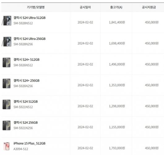 2일 LG유플러스는 갤럭시S24 시리즈와 아이폰15+ 모델의 공시지원금을 각각 최대 45만원까지 상향했다. 이날 발표된 LG유플러스의 공시지원금을 보면, 갤럭시S24 시리즈는 요금제에 따라 19만4000원부터 45만원까지 지원한다. 해당 단말기 공시지원금이 기존 5만~23만원이었던 점을 감안하면, 두 배 수준으로 증가했다.