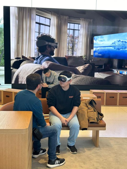 비전 프로의 공식 출시일인 이날 예상보다 쿠퍼티노 애플 본사 애플 스토어는 붐비지 않았다. 이와 관련, 애플 스토어 직원 마크씨는 "비전 프로를 체험하기 위한 예약을 사전에 받았기 때문이다"라고 설명했다. 다만 지난 19일부터 시작된 사전 판매를 통해 비전 프로를 구매한 뒤 이를 수령하려는 대기줄은 있었다. 20~30여명이 매장 밖에서 줄을 섰고 이들은 다소 들뜬 표정으로 자신의 수령 차례를 기다렸다.