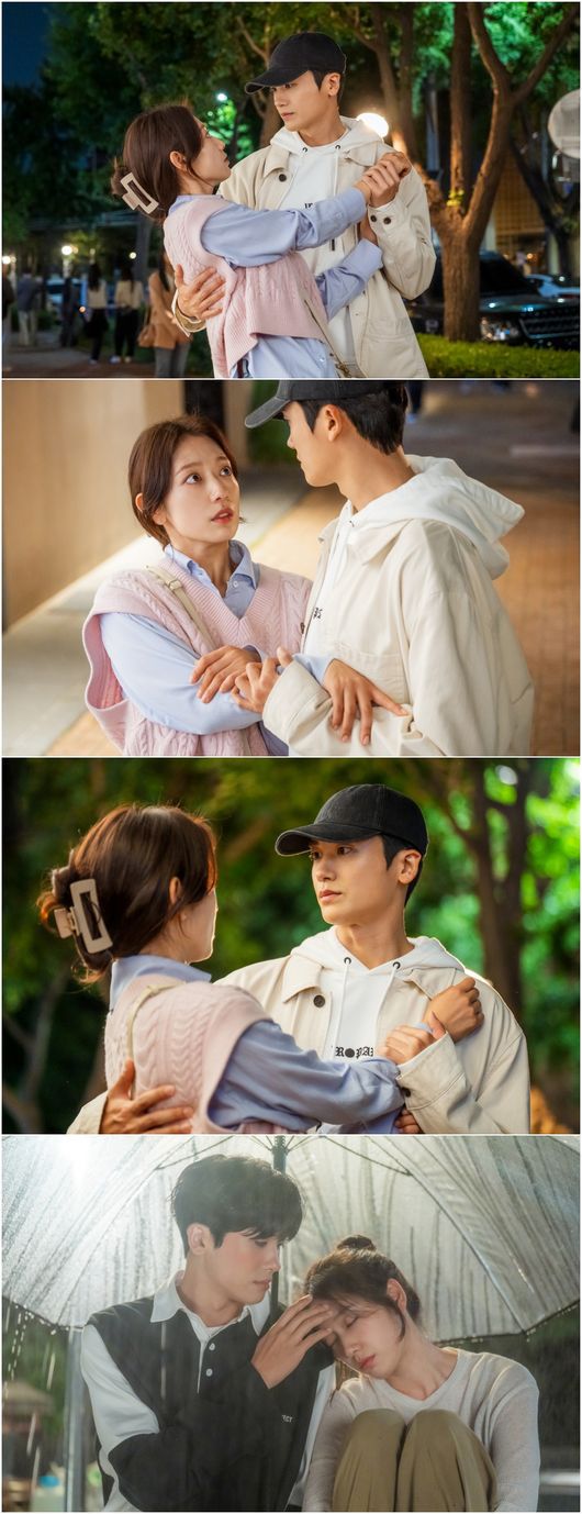 그런 가운데 공개된 사진 속, 남하늘과 여정우의 부쩍 가까워진 거리감이 보는 이들의 마음을 간질인다. 먼저 밤거리를 걷던 중 남하늘이 넘어질 뻔한 상황, 여정우가 그를 품에 감싸 안은 모습이 이목을 집중시킨다. 찰나의 순간 오가는 시선에는 당황한 듯 놀란 기색이 역력하다.