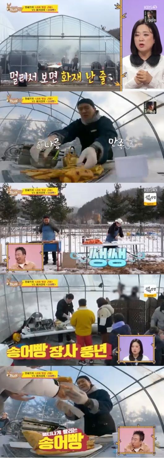 정호영은 비닐하우스 안에 붕어빵 기계가 준비된 것을 보고 의아해 했다. 김병현은 송어빵 판매를 위해 준비한 것이라고 털어놨다.