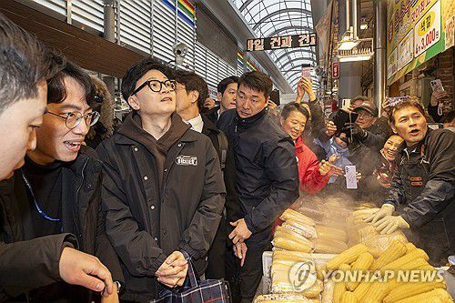 청바지에 후드티 차림의 한 위원장이 차량에서 내려 시장 안으로 이동하자 시민들과 유튜버 등 인파가 몰려들었다. 일부 시민은 "한동훈"을 연호하거나 셀카 촬영을 요청했다.