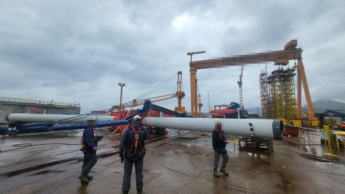 (통영=연합뉴스) 김선경 이준영 기자 = 5일 오후 1시 23분께 경남 통영시 HSG성동조선에서 50t 크레인이 넘어졌다.