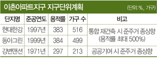 이번에 이촌2동 일대 현대한강, 동아그린, 강변맨션에 도입된 지구단위계획에도 각종 규제를 완화하고 재건축을 용이하게 하는 내용이 담겼다.