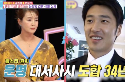 이날 MC들은 게스트 김원희에 대해 “연애부터 결혼까지 34년을 오로지 한 명과 사랑에 빠지신 분”이라며 그를 소개했다. 김원희는 연애 15년, 결혼 생활 19년, 남편과 함께한 시간이 무려 34년이라고. 김원희는 2005년 사진작가인 남편과 결혼했다.
