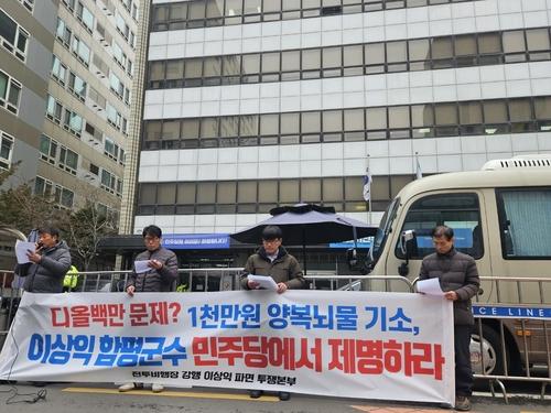 투쟁본부는 이날 민주당 서울 중앙당사 앞에서 기자회견을 갖고 "건설업자가 함평군청 발주 관급공사를 수주하기 위해 뇌물(888만원 상당의 양복 구매 비용)을 제공했으며, 이 군수가 이를 인지하고 양복을 받았다는 혐의에 대해 광주지검 목포지청이 지난 1월 31일 기소했다"며 이같이 밝혔다.