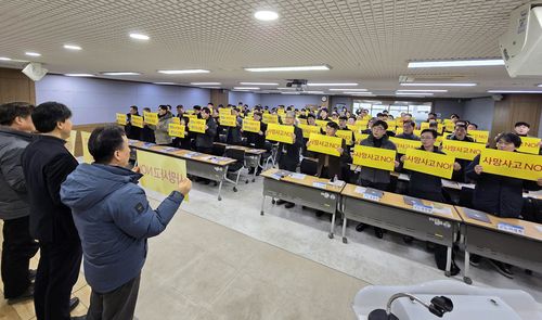 이에 고용노동부 강원지청과 안전보건공단 강원본부, 업종별 안전관리자 협의회, 재해예방 기관 관계자 약 100명은 이날 사망사고 근절을 위한 결의대회를 하고 대책을 논의했다.