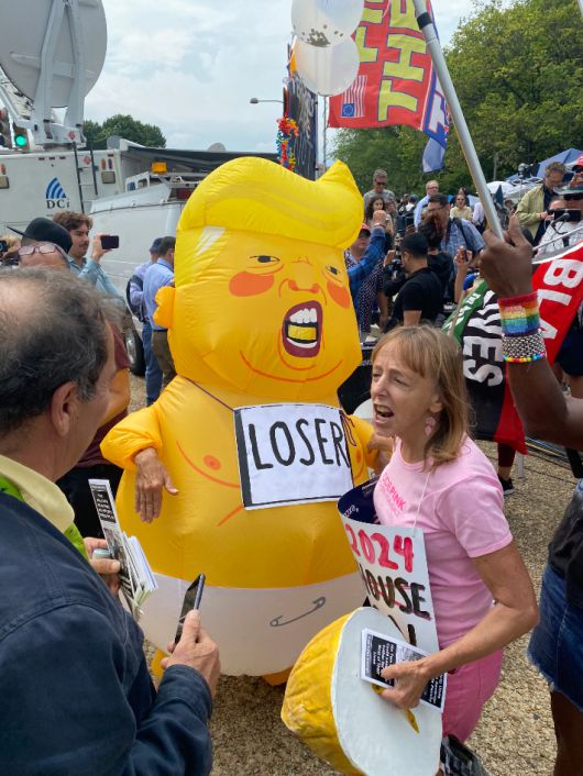 트럼프 반대자들이 법원앞에서 시위를 벌이고 있다. 최철 기자 |