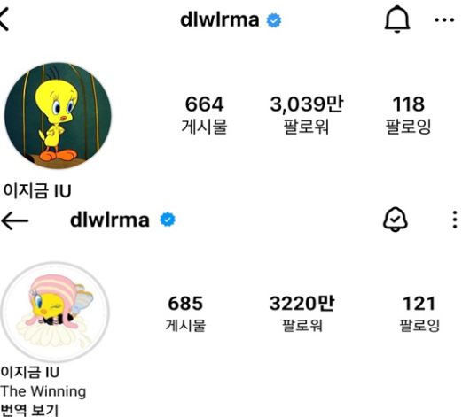 아이유는 지난 2018년부터 유지해오던 SNS 프로필 사진을 6일 변경했다. 평소 '닮은꼴'로 불리던 캐릭터 트위티 버드로 또 한번 변경해 눈길을 끌었다.