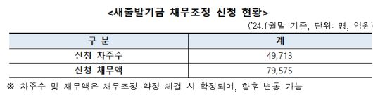 [파이낸셜뉴스] 한국자산관리공사(캠코)와 신용회복위원회는 지난달 말까지 '새출발기금' 채무조정 신청 인원이 누적 4만9713명, 채무액은 7조9575억원 규모를 기록했다고 7일 밝혔다.