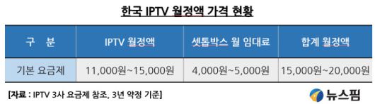 또 한국 IPTV는 넷플릭스 같은 OTT와 비교하면 요금 책정에 불합리한 점이 있다. 예를 들면 한 가정에서 TV를 2대 사용할 때 각각 셋톱박스를 설치해 추가로 셋톱박스 임대비용이 들어간다.