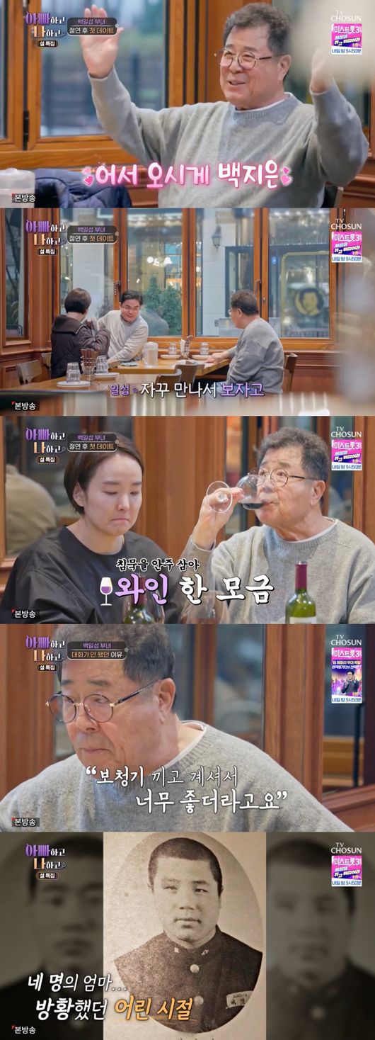 7일 오후 방송된 TV CHOSUN '아빠하고 나하고’에서는 딸과 사위와 레스토랑에서 함께 식사를 하는 백일섭의 모습이 그려졌다.