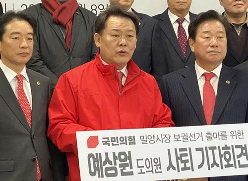 (창원=연합뉴스) 이정훈 기자 = 예상원 경남도의원(밀양2·국민의힘)이 오는 4월 10일 제22대 총선과 함께 치러지는 밀양시장 보궐선거에 출마하고자 사퇴했다.