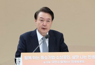 윤석열 대통령이 8일 서울 성동구 레이어57에서 열린 ‘국민과 함께하는 민생토론회 - 열 번째, 함께 뛰는 중소기업·소상공인, 살맛나는 민생경제’에서 발언하고 있다. (사진=연합뉴스) |