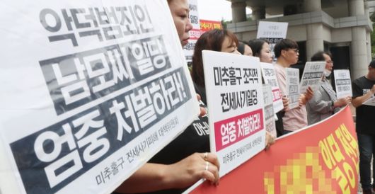 1심 재판부는 사기죄 법정최고형을 내리면서도 형량이 부족하다고 지적했습니다. 당시 오기두 판사는 판결문에서 "현행법은 인간 생존의 기본 조건인 주거의 안정을 파괴하고 취약계층의 삶과 희망을 송두리째 앗아가는 악질적 사기 범죄를 예방하는 데 부족하다"라고 말했습니다.