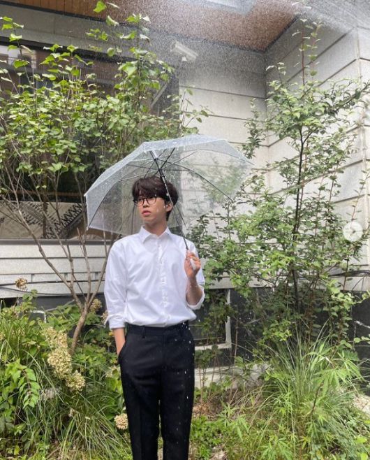 공개된 사진은 촬영에 임하는 그의 모습. 안경을 쓴 채 우산을 들고 포즈를 취하는 등 훈훈한 비주얼을 자랑하는 임영웅의 자태가 시선을 모은다.