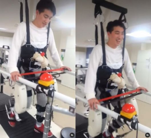 박위는 영상에서 보행을 돕는 재활 로봇 워크봇을 이용해 천천히 걸었다. 아직 기구를 착용하고도 손잡이에 의지해야 했지만, 박위는 기쁜 표정을 숨기지 못했다.