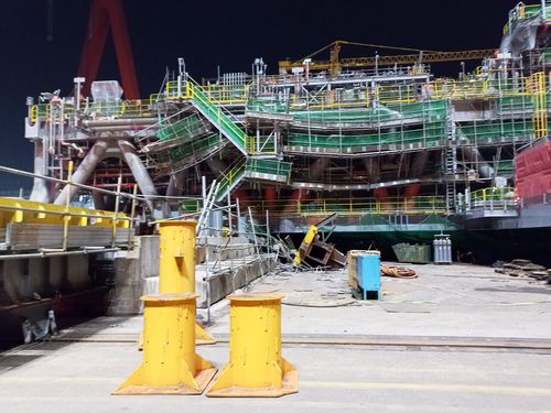 회사는 9천여t 규모 해양구조물인 '부유식 원유생산설비'(FPS) 상부 설비를 이동하는 작업 중 구조물 일부가 내려앉으면서 사고가 발생한 것으로 추정한다.