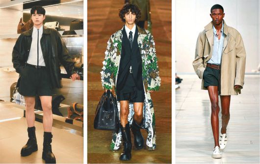 2023년 진행된 명품 브랜드 셀린느 팝업스토어 행사에서 배우 박보검은 무릎 위로 올라오는 남성용 쇼트팬츠에 가죽 재킷과 부츠를 매치한 파격적인 젠더리스 룩으로 시선을 끌었다(왼쪽 사진). 포멀한 디자인의 슈트에 쇼트팬츠를 더해 개성을 드러낸 루이비통의 2024 봄·여름 컬렉션. 하우스를 상징하는 카무플라주 패턴 아우터를 곁들여 단조로운 슈트에 활력을 불어넣었다(가운데 사진). 허벅지 위를 웃도는 마이크로 쇼츠로 쇼트팬츠 유행의 신호탄을 알린 에르메스의 2024 봄·여름 컬렉션. 셔츠와 재킷을 더하면 정갈한 분위기를 연출할 수 있다(오른쪽 사진). 인스타그램 캡처 및 각 브랜드 제공 |