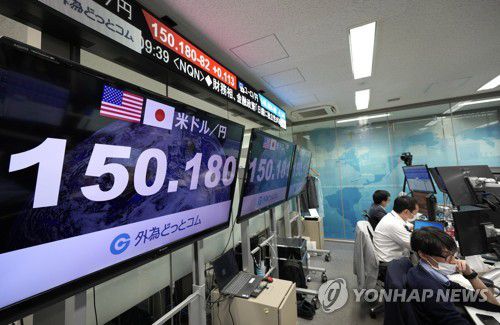 (도쿄=연합뉴스) 박상현 특파원 = 엔/달러 환율이 지난해 11월 이후 약 3개월 만에 달러당 150엔을 넘어섰다고 일본 공영방송 NHK가 14일 보도했다.