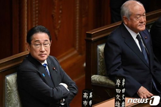 26일(현지시간) 기시다 후미오 일본 총리(좌)와 스즈키 슌이치 재무상(우)이 일본 도쿄 국회에서 열린 중의원 본회의에 참석하고 있다. 2024.01.26 ⓒ AFP=뉴스1 ⓒ News1 정지윤 기자 |