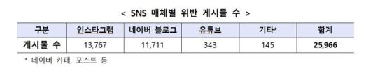 공정위에 따르면 인스타그램과 유튜브에서는 표시 위치가 부적절한 게시물이, 네이버 블로그에서는 표현방식 부적절한 게시물이 가장 많았다.
