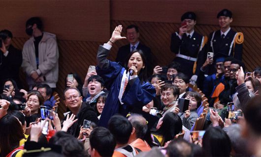 축사를 마친 이씨는 2010년 발표한 자신의 히트곡 ‘치티치티 뱅뱅’을 부르며 분위기를 끌어올렸다. 이씨는 1998년 국민대 공연예술학부 연극영화학과에 입학했다. 같은 해 그룹 ‘핑클’로 데뷔해 연예계 활동을 하다 2006년 졸업했다.