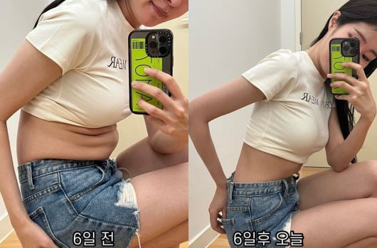 14일 미자는 "5kg 폭풍 감량!! 6일동안!! 5kg 급찐살 싹-다 뺐어요!"라며 다이어트 비포, 애프터 사진을 공개했다.