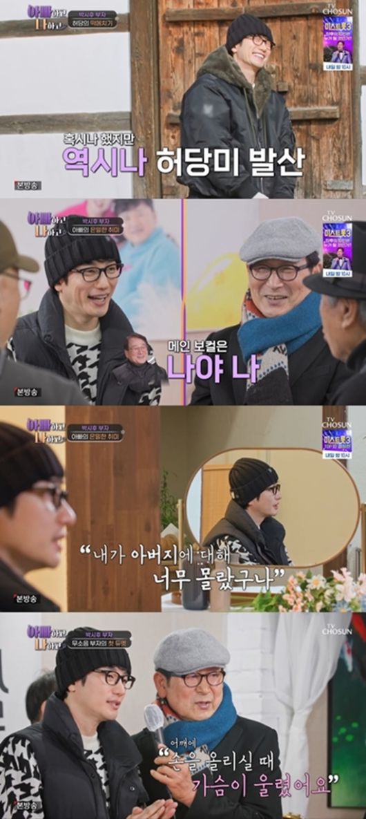 (엑스포츠뉴스 김유진 기자) 백일섭 부녀가 절연 후 처음으로 명절을 함께 보내며 뜻깊은 시간을 가졌지만, 지난 상처를 또다시 마주하며 마음의 거리를 확인했다. 아빠의 음악 취미 생활을 공유하며 듀엣 무대까지 펼친 박시후는 그동안 몰랐던 아빠의 모습에 놀람과 미안함이 섞인 묘한 감정을 고백했다.