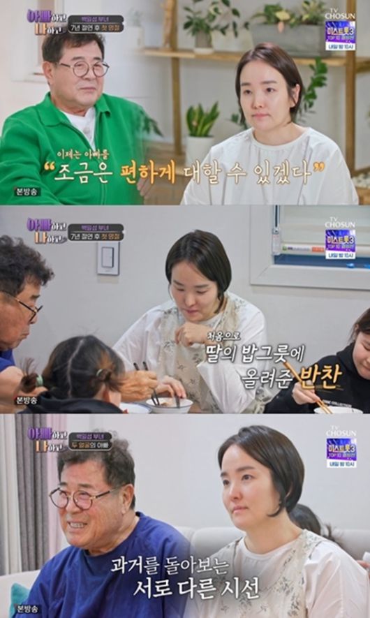 또 "아빠가 술 드시고 기분이 좋은 날은 '오늘은 안전하구나' 싶어 저도 좋았다"라고 어릴 적 기억을 회상했다. 이에 백일섭은 "기분이 안 좋다. 내가 그렇게 나쁜 놈은 아닌데...그럴 수밖에 없었던 이유를 설명해야 할 것 같다"라며 섭섭함을 토로했다.