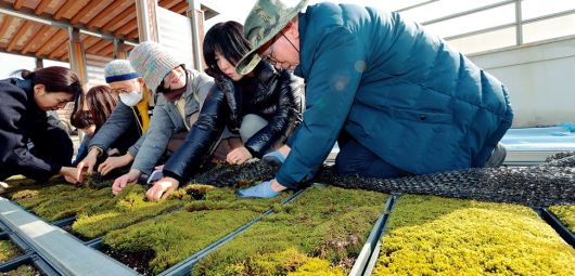 노도네는 이끼 키우기 실험 활동을 올해도 이어간다. 추가로 건물 벽면과 지붕을 활용해볼 계획이다. 천수텃밭의 화장실과 컨테이너 지붕에 배수판을 깔고 야자 매트 위에 이끼 말린 것을 뿌린 뒤 잔디 보호판을 깔고 자동급수가 이뤄지도록 할 예정이다. 옹벽에는 모듈 형태를 만들어 탈부착하는 시도를 할 생각이다.