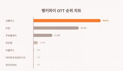 티빙은 50,384포인트로 전일보다 3,338포인트 상승해 2위를 차지했다. 쿠팡플레이, 라프텔, 비플릭스, 아마존프라임비디오, 카카오티비가 뒤를 이으며 3~7위를 기록했다.