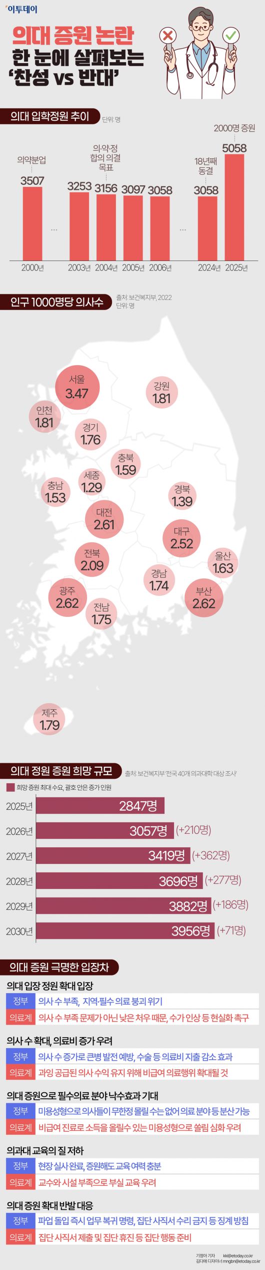 정부: 의사 수 증가로 큰병 발전 예방, 수술 등 의료비 지출 감소 효과