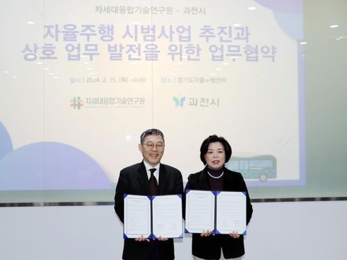 (수원=연합뉴스) 김경태 기자 = 차세대융합기술연구원(이하 융기원)은 15일 경기도자율주행센터에서 과천시와 자율주행 기술 협력을 위한 업무협약을 체결했다고 밝혔다.