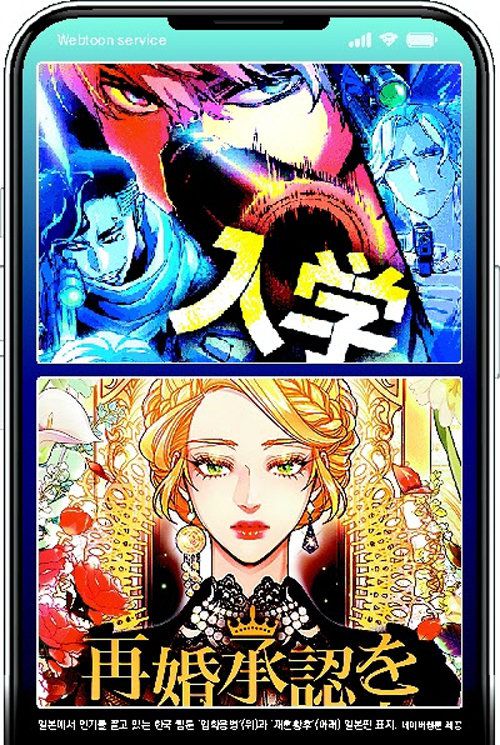 한국 웹툰이 일본 시장에서 잇따라 성공을 거두고 있다. 카카오의 일본법인 카카오픽코마(구 카카오재팬)가 운영하는 현지 웹툰 플랫폼 ‘픽코마’는 지난해 거래액이 1000억 엔(약 8874억 원)을 넘겨 2016년 출시 이후 최고 기록을 세웠다. 네이버웹툰 산하 라인망가와 이북재팬의 지난해 거래액도 1000억 엔을 달성했다. ‘재혼황후’, ‘약탈신부’처럼 일본 내 월 거래액이 1억 엔(약 8억9000만 원)을 넘기는 한국 웹툰도 등장하고 있다.
