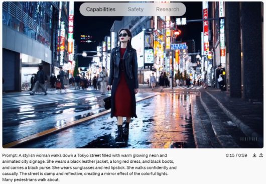 오픈AI는 블로그 포스팅을 통해 소라로 생성된 이미지들이 "다양한 캐릭터와 구체적인 움직임, 사물이나 배경의 정확한 디테일을 살린 복잡한 장면들을 담을 수 있다"고 소개했다.